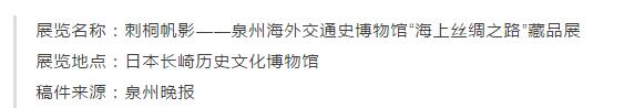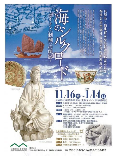 为纪念福建省与日本长崎县缔结友好省县关系35周年,加深两地友好关系,助力“海上丝绸之路”对外宣传,应日本长崎历史文化博物馆特别邀请,泉州海外交通史博物馆16日在长崎举办“刺桐帆影——泉州海外交通史博物馆‘海上丝绸之路’藏品展”。