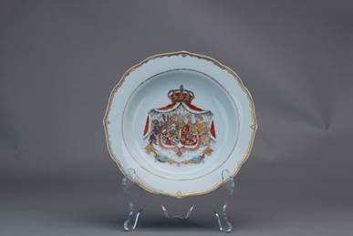【广彩描金徽章纹汤盘】